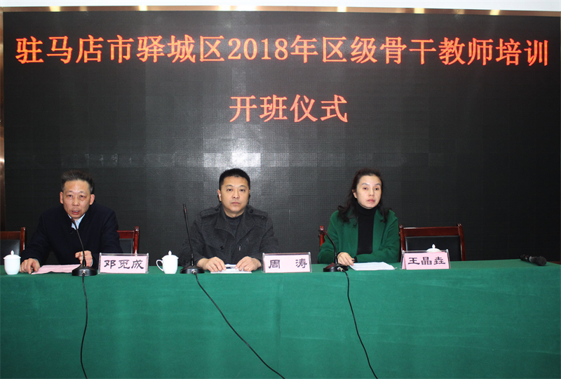 11月27日至12月2日驻马店市驿城区2018年区级骨干教师培训班在我院举行。11月28日上午举行了开班仪式,驻马店市驿城区教育体育局副局长王晶垚,我院党总支书记周涛,副院长邓觅成和100多名参训教师参加了开班仪式。仪式由邓觅成主持。